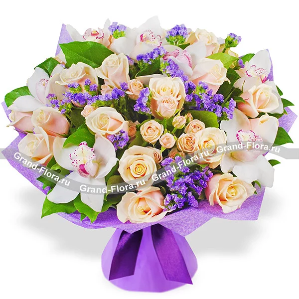 Восхитительный букет из орхидей и роз кремовых оттенков сочетает в себе легкость и гармоничность. Нежная композиция цветов с мягкими нотками ванили - лучше любых слов!